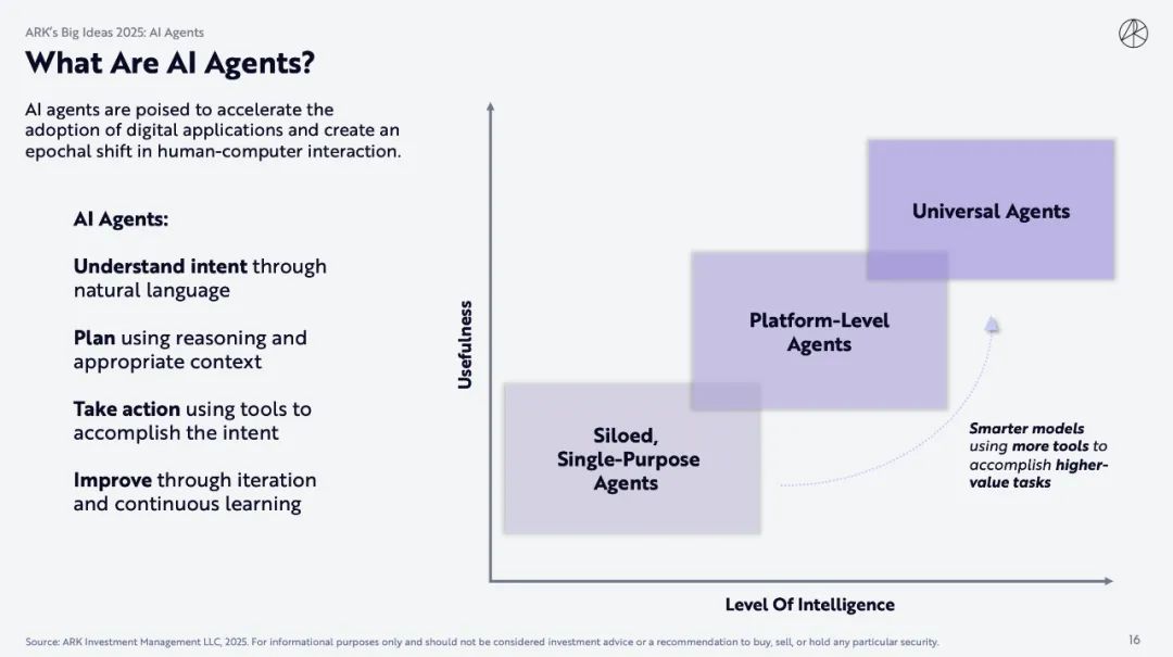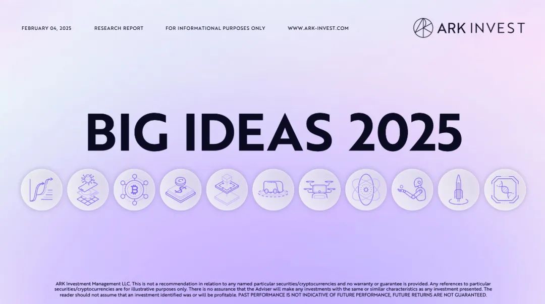2月5日,由木头姐创立的ARK Invest重磅发布一年一度的「Big Ideas」报告。报告从人工智能、Ai agents、比特币、公链、机器人、储能、自动驾驶等11个版块介绍未来技术加速发展的现状和未来重要趋势。完整内容总计148页。其中ARK Invest在报告的比特币部分中预测,到2030年,比特币有望达到150万美元。Ai agents将来带划时代的变革。