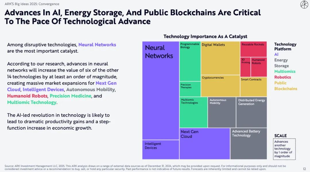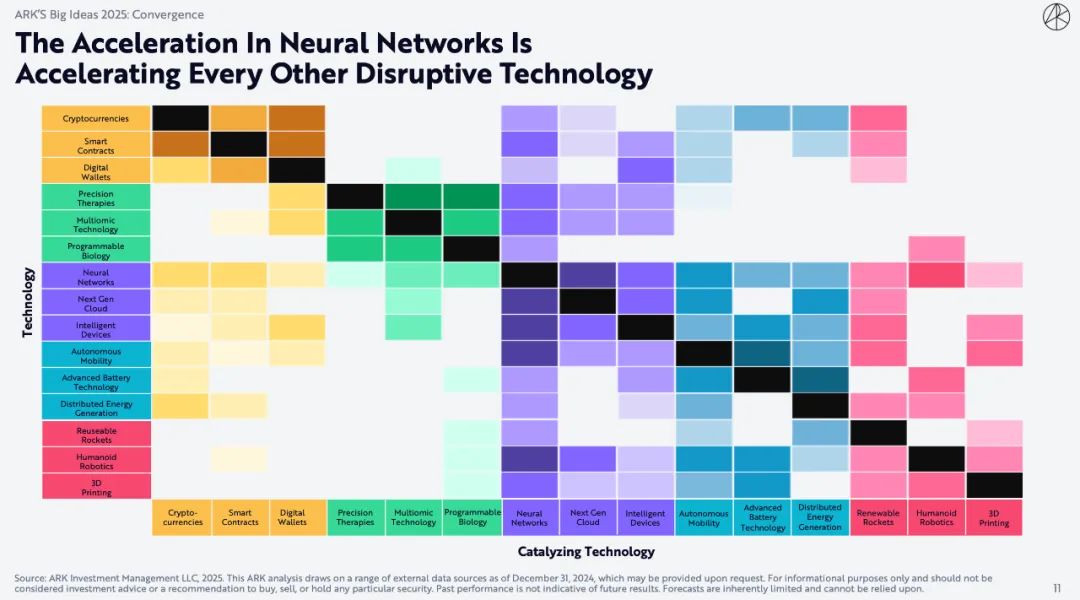 ARK Invest表示,今年报告提出11个「大创意」,展示当今正在发生的巨大变革。我们的研究表明,这些「大创意」有望大幅提高生产力,彻底改变各行各业,并创造长期投资机会。