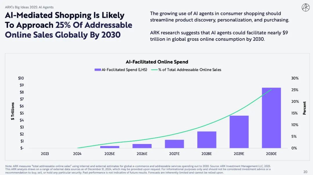 ARK 研究表明,到2030年,AI Agents可以促进全球近9万亿美元的在线消费总额。