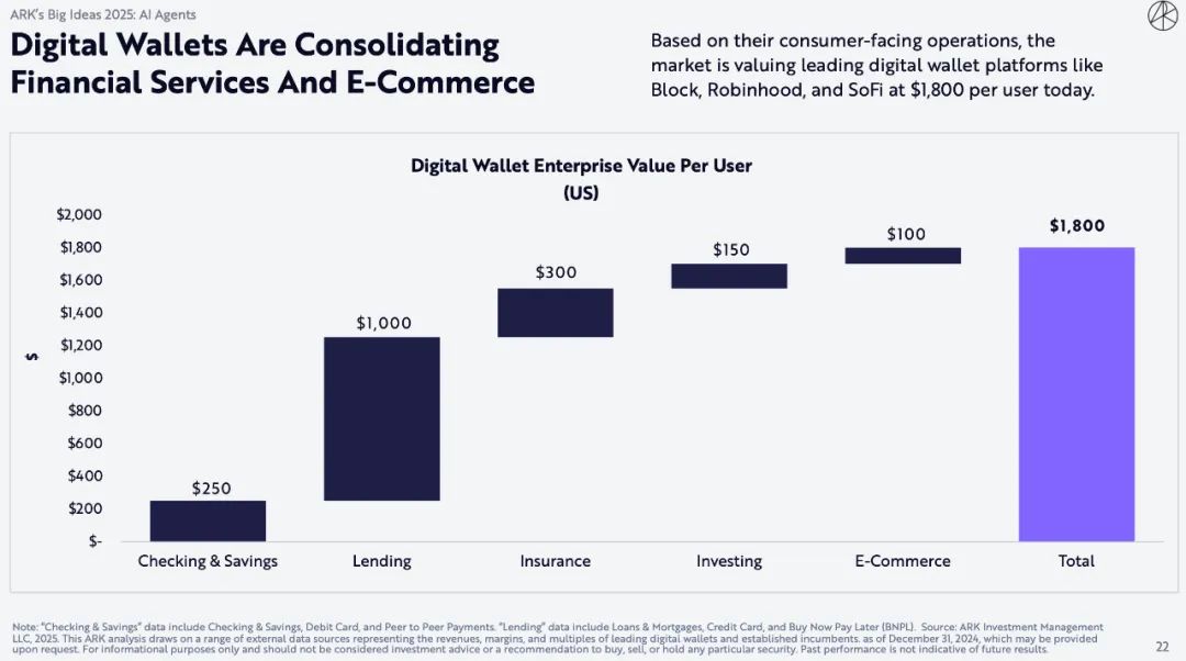 根据面向消费者的运营情况,市场对Block、Robinhood和SoFi等领先数字钱包平台的估值目前为每位用户 1,800 美元。