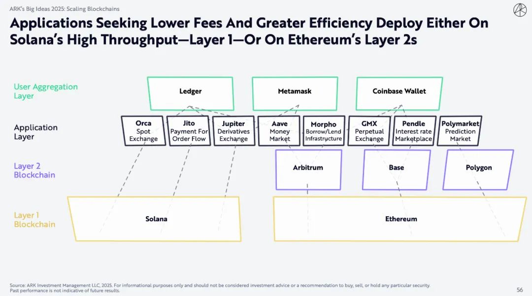 寻求更低费用和更高效率的应用程序要么部署在Solana的高吞吐量第1层,要么部署在以太坊的第2层