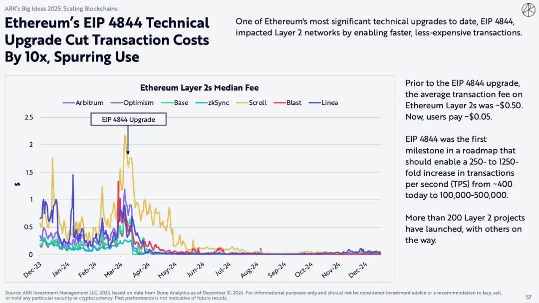 在EIP 4844升级之前,以太坊第2层的平均交易费用约为0.50美元。现在,用户只需支付约0.05美元。