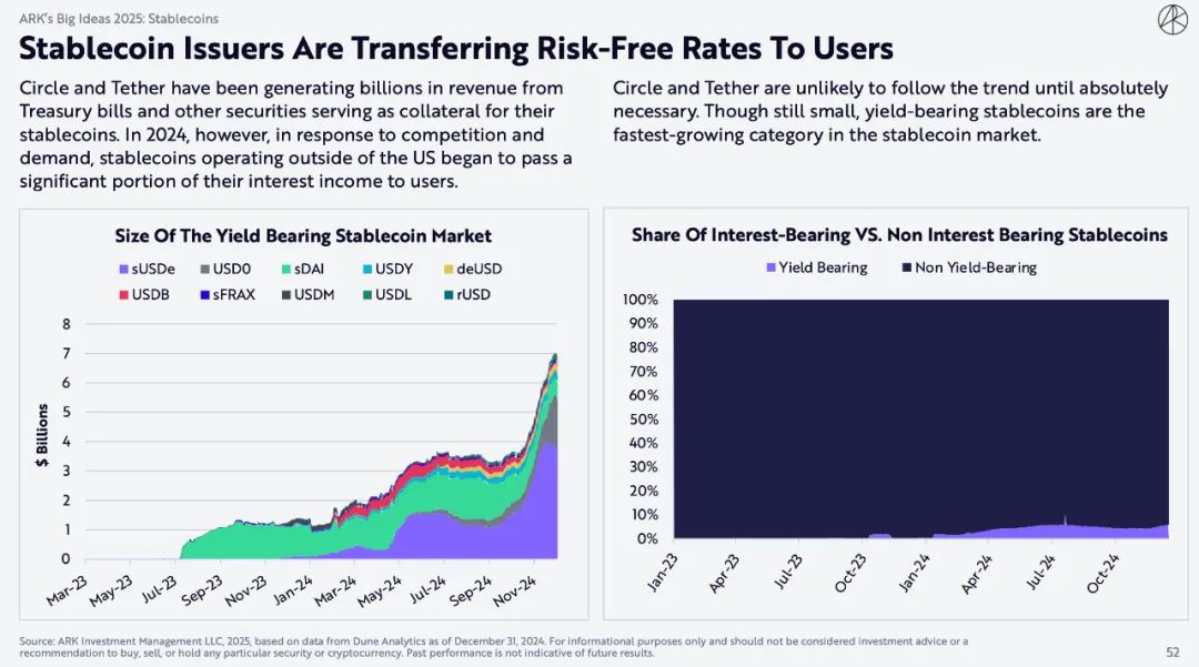 除非绝对必要,否则Circle和Tether不太可能追随这一趋势。尽管规模仍然很小,但收益型稳定币是稳定币市场中增长最快的类别。