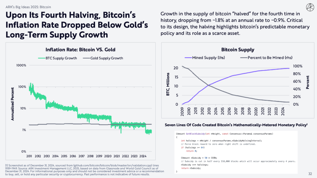 比特币供应量增长历史上第4次「减半」后,年增长率从约 1.8% 降至约 0.9%。减半对其设计至关重要,凸显了比特币可预测的货币政策及其作为稀缺资产的作用。