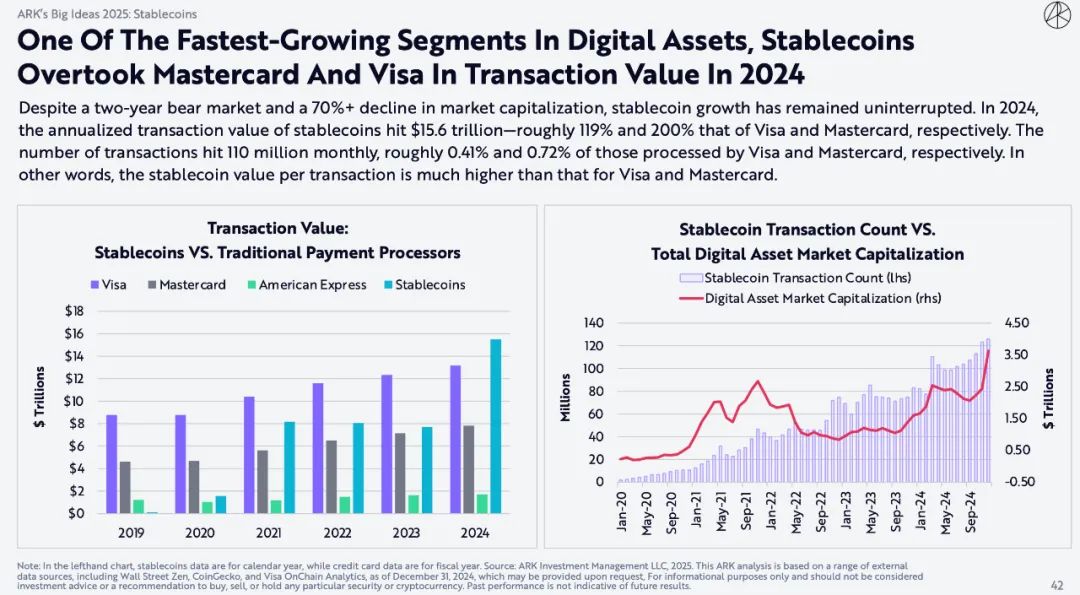 作为数字资产中增长最快的领域之一,稳定币在2024年的交易额超过了万事达卡和Visa