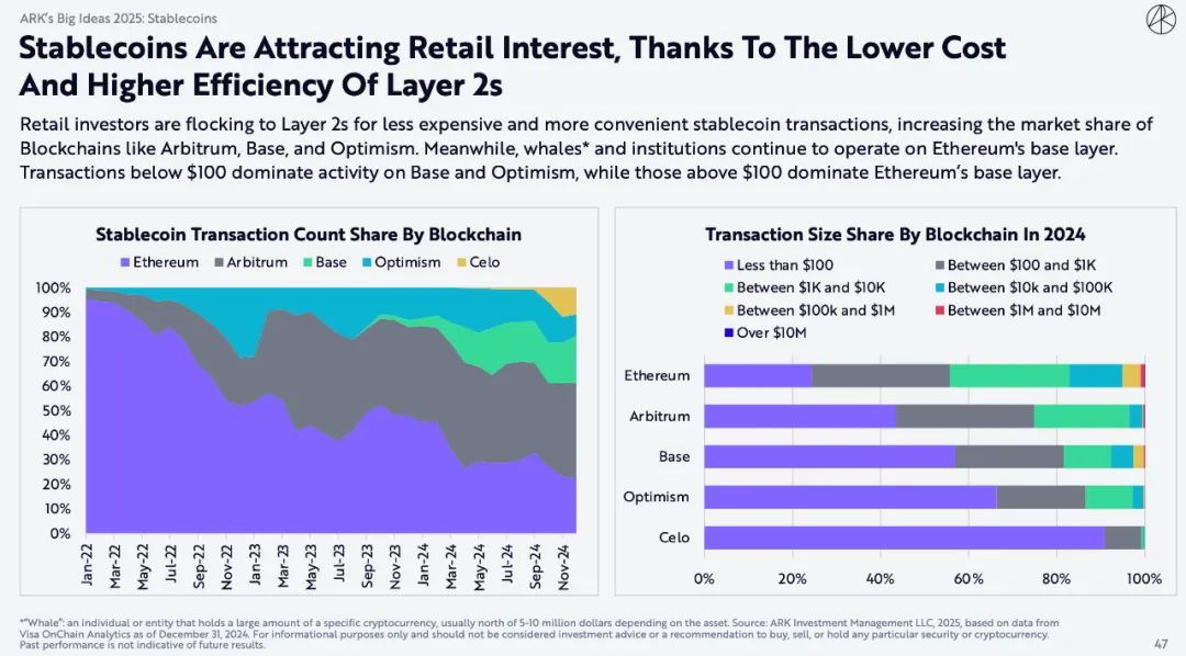 由于Layer 2成本更低、效率更高,稳定币正在吸引散户投资者的兴趣