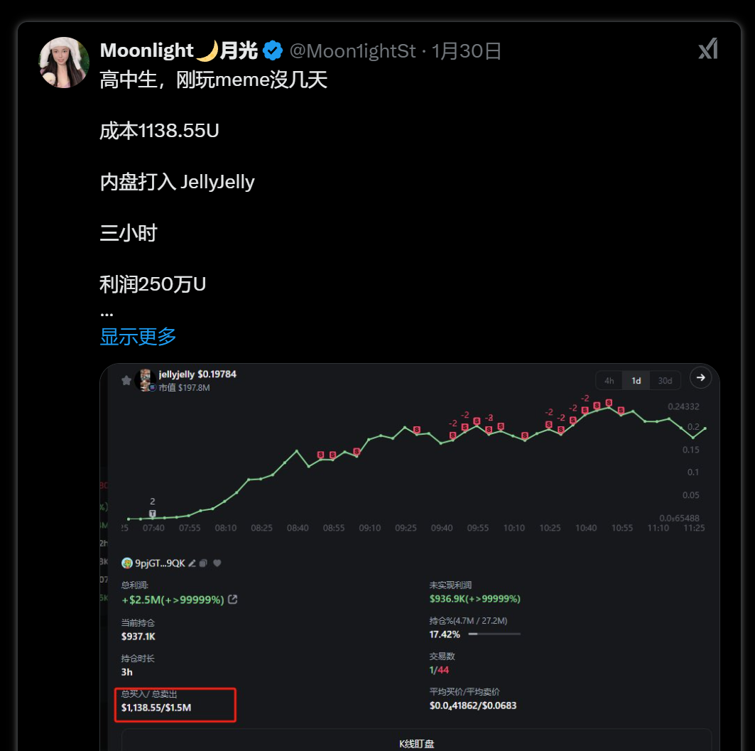 我相信,所有玩 meme 的家人,甚至不玩 meme 的,都听说了最近这个传奇故事。一位高中哥,加入枯坐一个月,一下子押中 Jelly,超低成本一把博了千万。