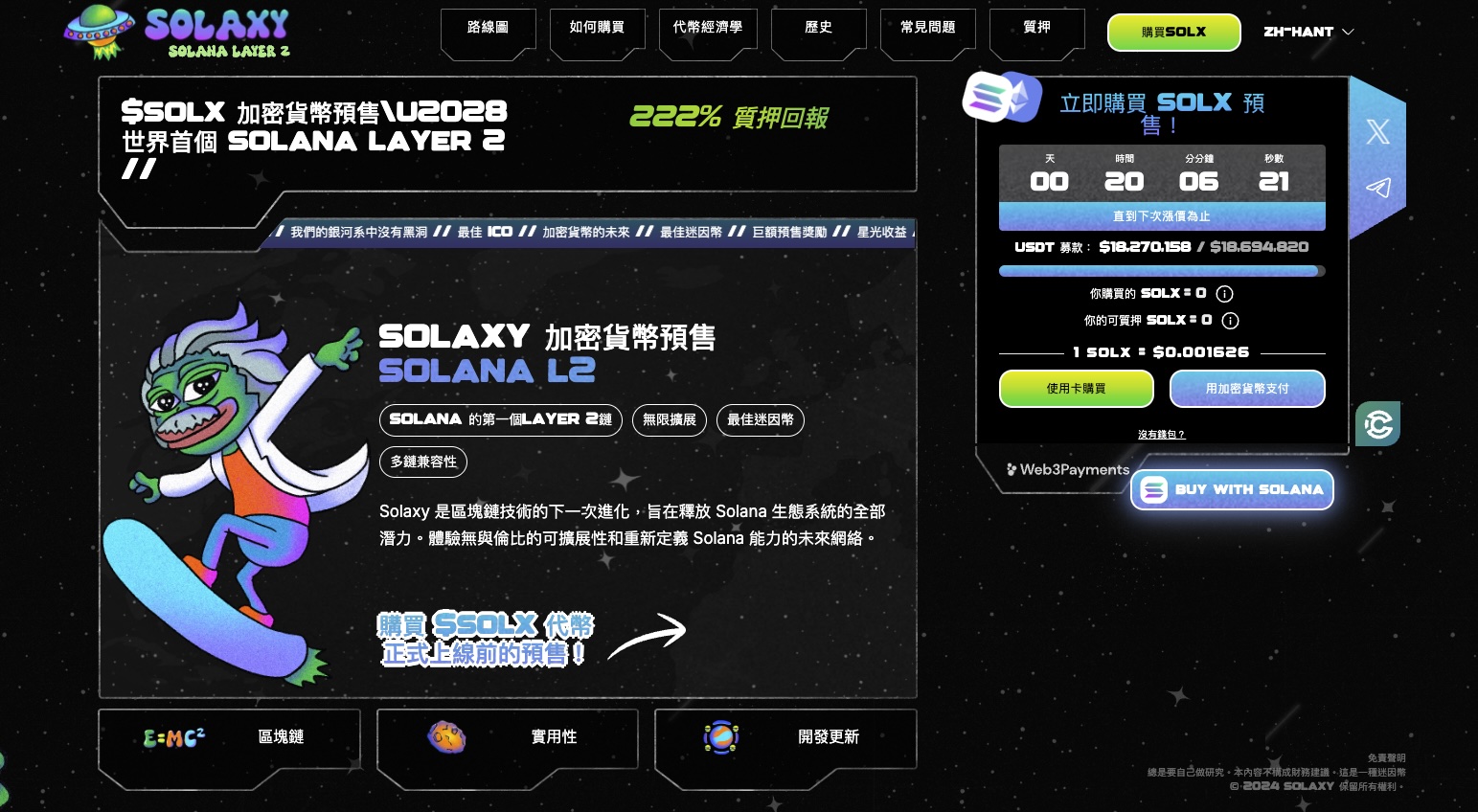 - Solaxy:Solana Layer 2解决方案,预售筹资1800万美元