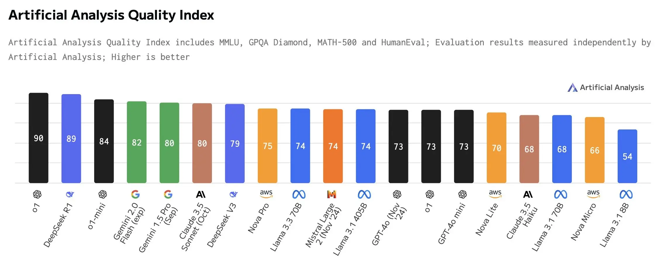终于在 2025 年 1 月 DeepSeek 加速穿过了奇点,用他们培育出的第一代具备推理能力的大模型 DeepSeek-R1 以远低于 ChatGPT-O1 的训练成本和卓越性能打开了那道门。