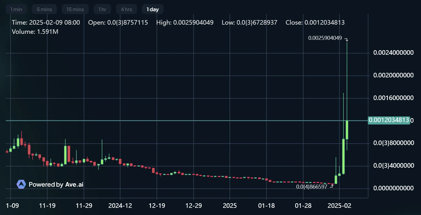 背景概念:纯 Meme 代币,但是存在明显的强背景,与多个 BSC 应用和项目方存在联动。并在 2 月 9 日得到了 four.meme 的投资 。