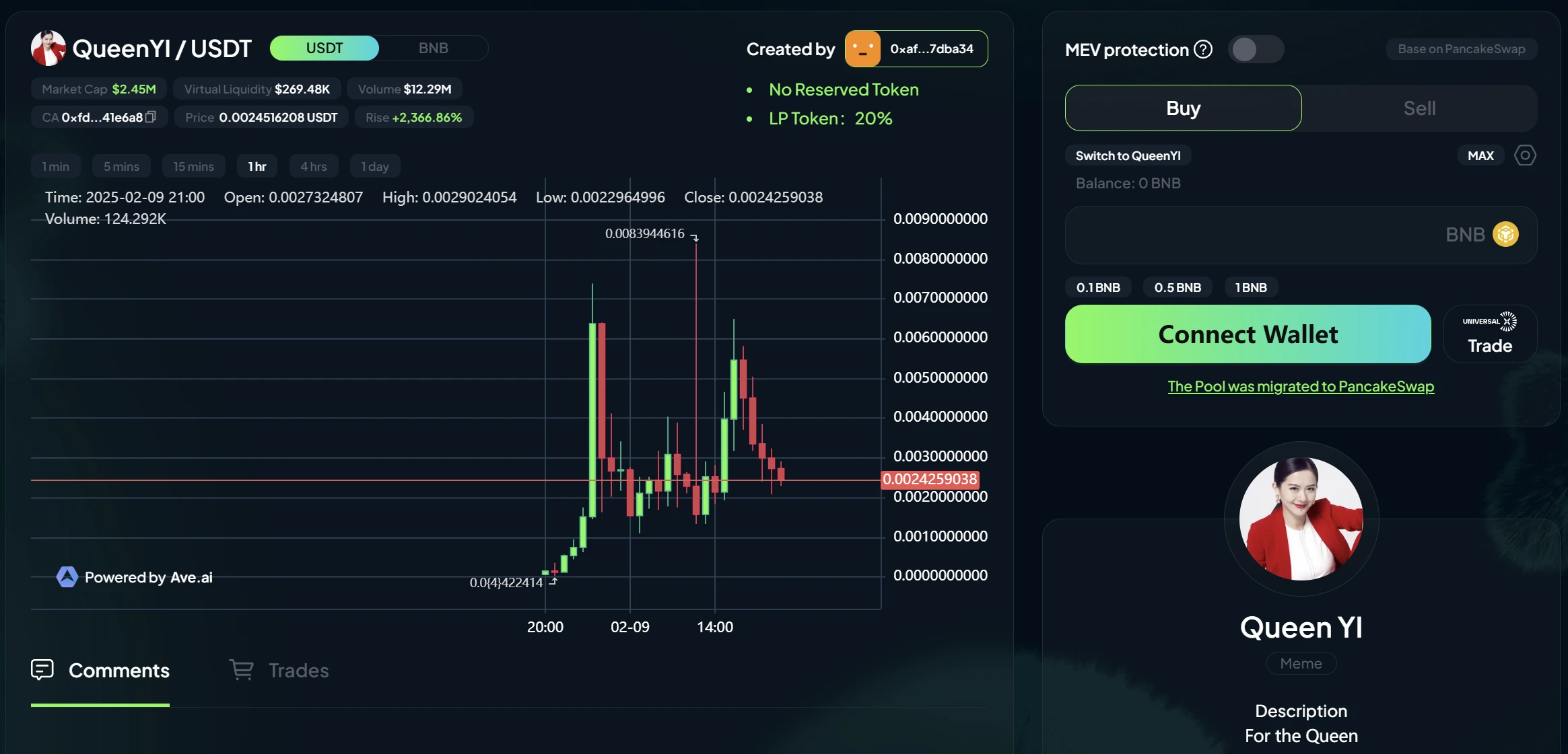 背景概念:Pancake 所推出的 pump 平台 PancakeSwap SpringBoard 上的第一个 Meme 代币,历史最高市市值 700 万美元。