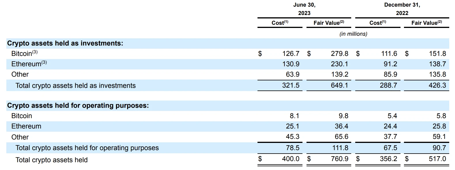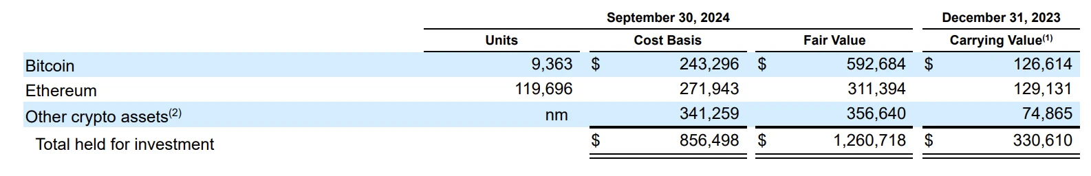 根据 Coinbase 的公开财报数据,截至 2023 年 6 月 30 日( 参见 2023 年 Q2 财报第 66 页 ),Coinbase 的资产负债表上持有约 2.3 亿美元的 ETH,当时 ETH 价格为 1934 美元,这意味着 Coinbase 持有 118924 ETH;截至 2024 年 9 月 30 日( 参见 2024 年 Q3 财报第 22 页 ),Coinbase 的资产负债表上持有 119696 ETH。