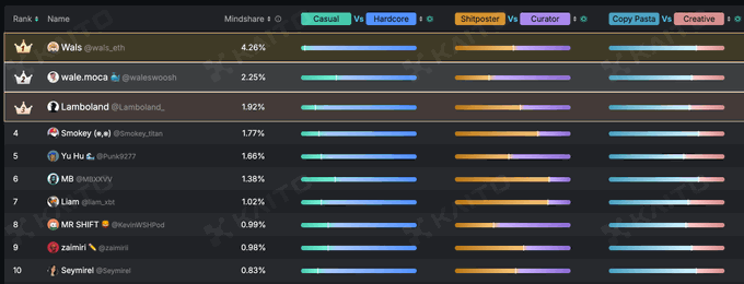 还有一个提示:自从@_kaitoai 引入 Yapper 排行榜以来,更容易追踪谁在某项目中 Yapping 最多。占领排行榜也是提升你的 Yap-to-Earn 技能的有用方式。