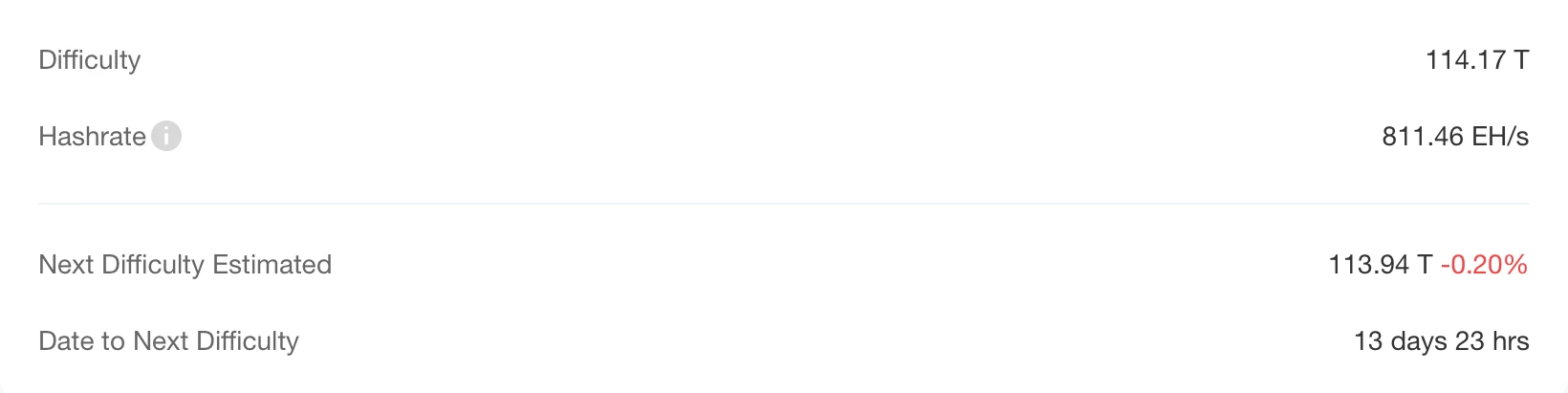 2025 年 2 月 9 日,比特币网络算力创下新纪录,突破 810 EH/s,达到 818 EH/s。比特币网络完成了新一轮的难度调整,比特币挖矿难度上调至 114.17 T。随着难度调整的发生,矿工的运营效率也随之优化,从而影响整体能源消耗。