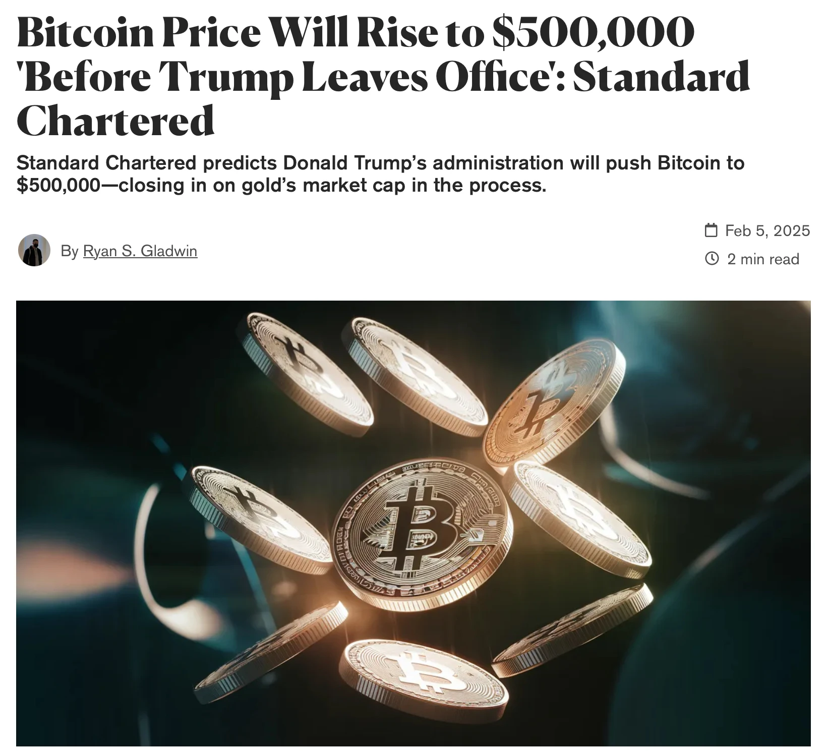 渣打银行预测:比特币将在特朗普任期内涨至 50 万美元