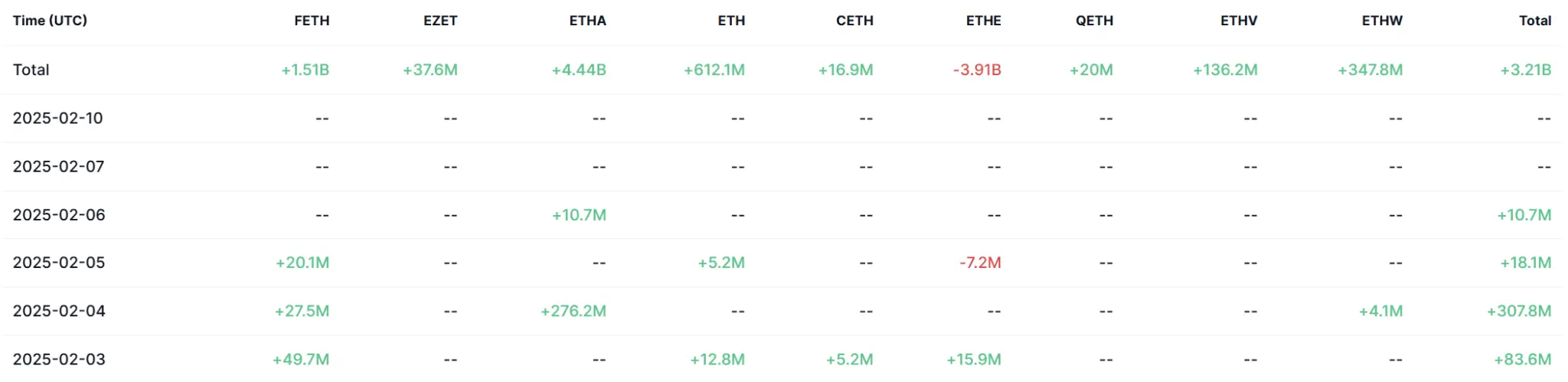 上周交易日(2月 3日至 2月 7 日)以太坊现货 ETF 单周净流入0.278亿美元。机构买卖情况如下