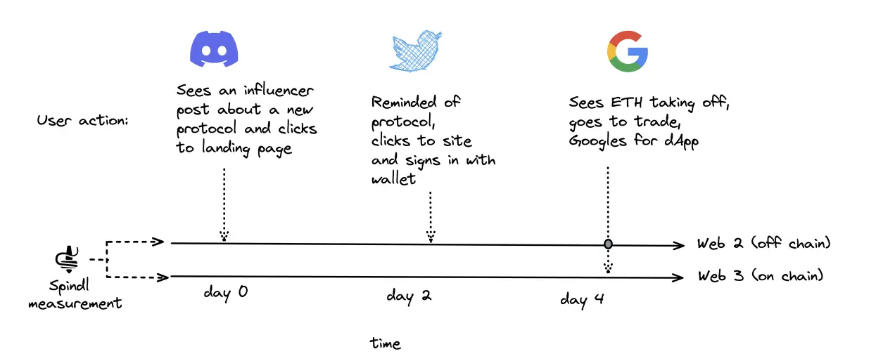 Spindl,作为所有归因提供商中的独特者,智能地将链外和链上事件融合在一起,毫不费力地回答这些问题。通过其不断更新的身份,Spindl可以任意交织Web2和Web3的漏斗,巧妙地隐藏用户背后的复杂交易。