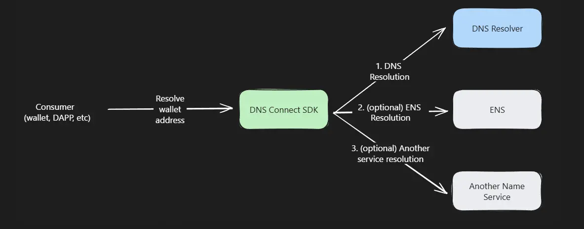 DNS Connect SDK旨在将不同的Web3名称解析服务整合到一个平台下,以简化开发者的集成工作。它支持以下解析方法,可以按优先级顺序应用: