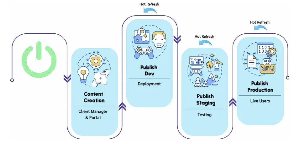 游戏通常依赖于不同的系统来进行更新,这取决于变更是否影响代码、配置或内容。Beamable 允许您发布版本化的内容,这些内容会根据设计规则进行原子更新和验证。