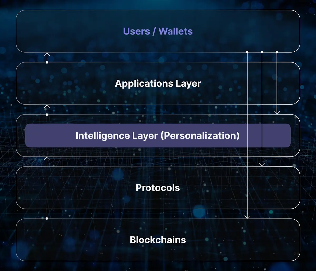 Bluwhale 协议无缝地嵌入在 应用层 与 协议层及L1/L2链 之间,将关键的用户观点数据传递给去中心化应用(dApps)和个人用户,而无需他们手动进行分析或编写技术查询。