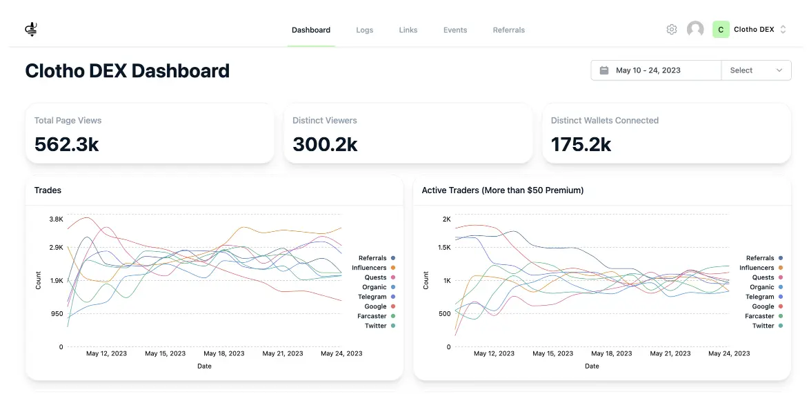 这意味着Spindl可以告诉你你的用户来自哪里(Twitter?Telegram?链上空投?),以及他们在你的dApp内的链上行为。换句话说,他们是否创造了收入?他们是否留下来?他们的获取成本是否过高?