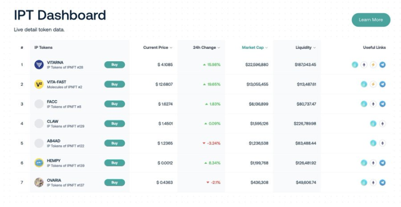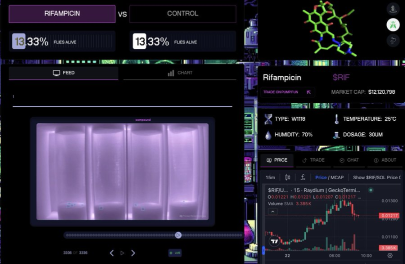 医学研究人员可以在 Pump Science 上提交药物研究提案,该平台帮助在蠕虫上测试这些药物,并将实验结果实时传输到平台前端。用户可以对代表这些药物的代币进行投机。两个流行的代币,Rif( 利福平 ) 和 URO( 乌洛立丁 A) 正在蠕虫上进行测试,如果发现可以延长寿命,这些化合物将进入商业化阶段,持有者将分享利润。