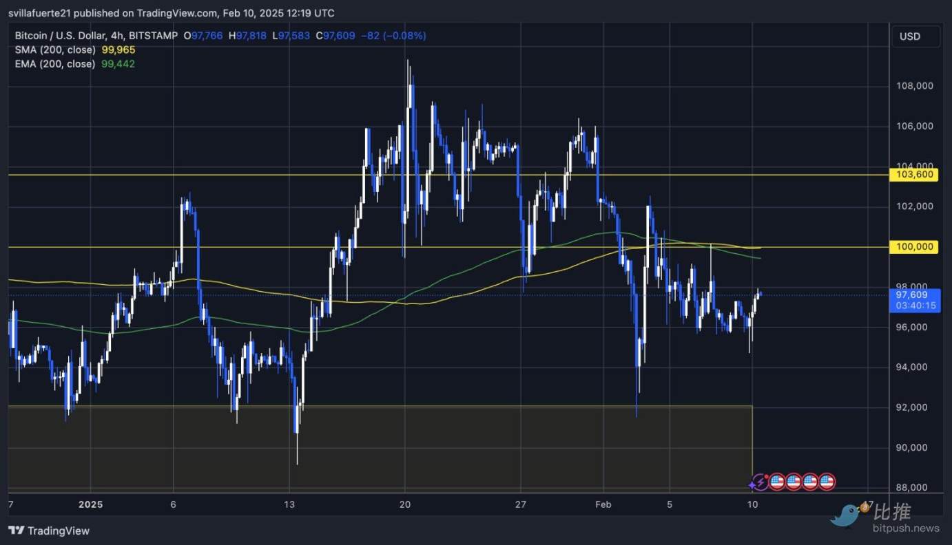 TradingView 数据显示,比特币当前价格在 97,600 美元附近徘徊,分析师 Sebastian 认为,要重新点燃看涨势头,比特币首先需要站稳 98,000 美元这一关键水平,这将为突破 10 万美元的心理关口奠定基础。一旦比特币成功突破并站稳 10 万美元大关,将确认多头动能的强势回归,并有望进一步上探更高的供应区间,开启新一轮上涨行情。