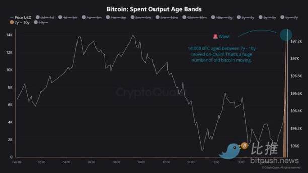 2 月 9 日,知名分析师 Maartunn 分享了一组链上数据:14,000 枚 7 至 10 年历史的比特币在链上发生了移动。