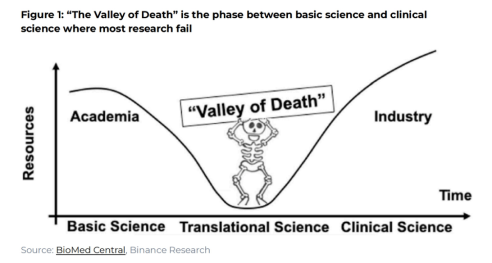 (图 1 :「死亡之谷」是基础科学和临床科学之间的大多数研究失败的阶段)
