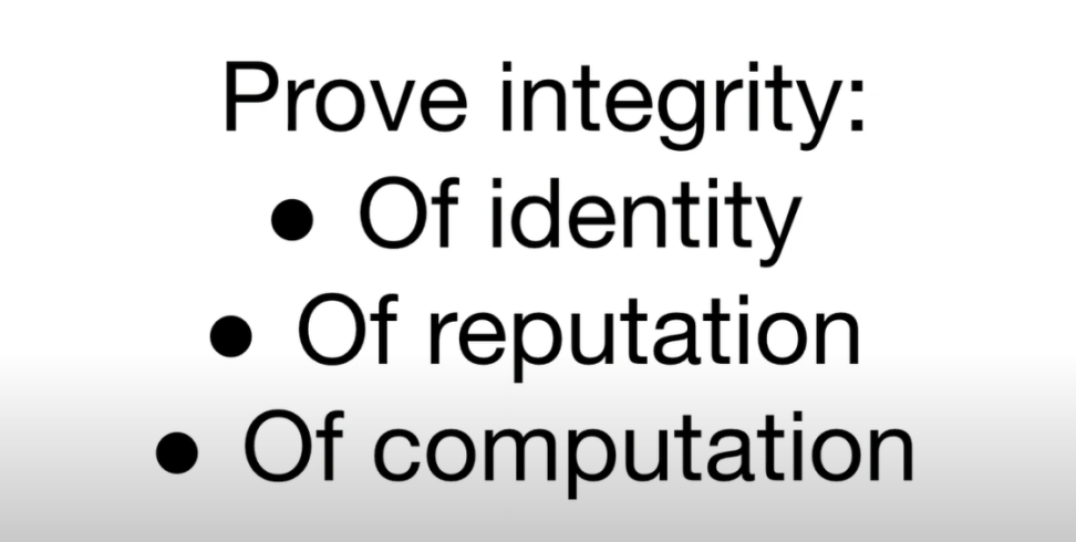 我们有能力证明完整性,证明身份、声誉和计算的完整性。