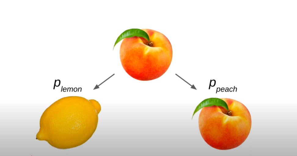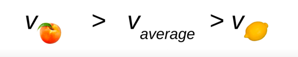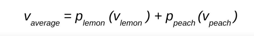 你愿意为此支付的价格是多少?这就像某种加权平均,我们都可以内化这个概念——有一定的「柠檬」概率乘以「柠檬」的价值,加上「桃子」概率乘以「桃子」的价值。