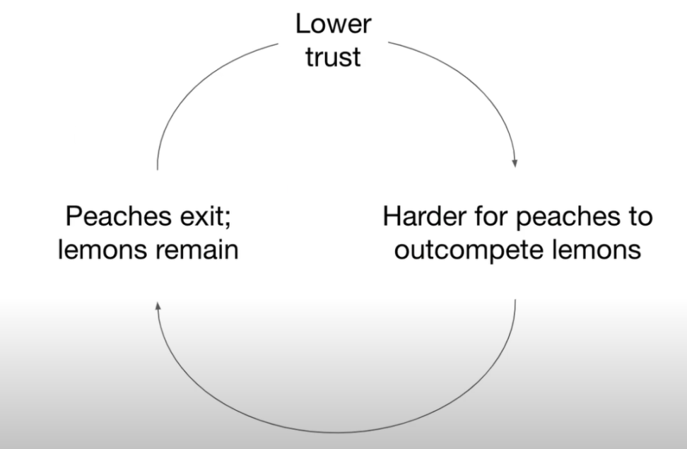 因为当我们信任度降低时,「桃子」更难胜过「柠檬」,「桃子」退出市场,我们只剩下「柠檬」,这不是一个好地方。