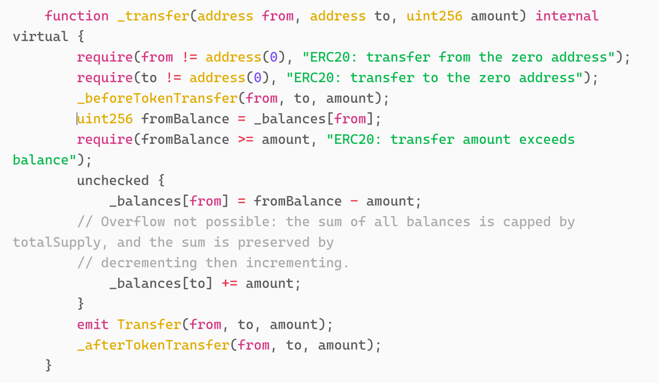 平台上其他用户可以通过平台进行买卖,但是,买卖后的 token 没法通过 transfer 转给其他用户,我们可以看一下链上 ERC-20 Token 的源代码,