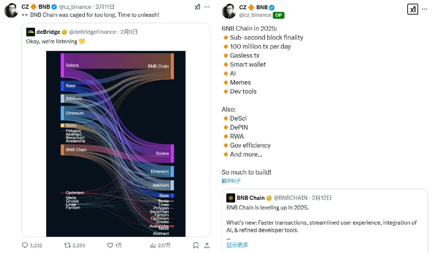 随着 CZ 回归后,BNB Chain 通过技术升级、生态开放和 Meme 热潮重获市场关注。短期来看,Meme 币的投机热潮可能带来波动,但长期来看,BNB Chain 凭借「高吞吐量、低费用、合规」的组合拳,有望在多链竞争中脱颖而出,成为下一代公链生态的核心力量。