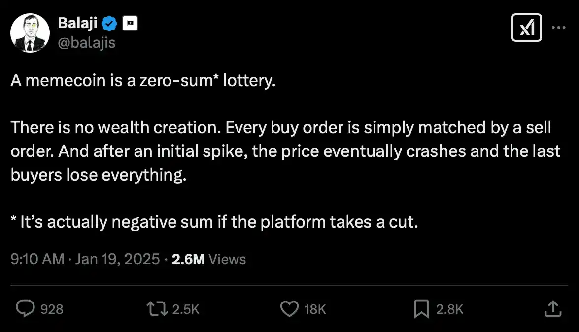 说明:这篇文章在草稿箱里待了几个月,所以它没有包括$TRUMP、$MELANIA 或最近的市场抛售。这些并不会对论点产生实质性影响,因此没有被提及。