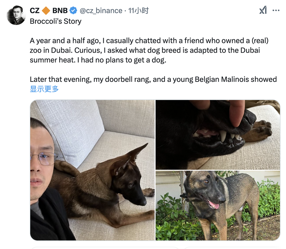 随后,全网开始竞猜CZ宠物狗的名字并开始埋伏相关MEME币企图早早“占座”,甚至有少数代币市值被推高数千甚至上亿美元。而在当天晚上,CZ预告将在3小时后(迪拜时间晚上8点左右)发布狗狗的照片,吊足了MEME玩家的胃口。在经过数小时等待后,CZ终于在公布2月14日凌晨公布了宠物狗Broccoli的照片以及他们之间的故事,且他还表示,“我只是发布了我狗的照片和名字。我不会亲自发行Meme币。这取决于社区是否这样做。BNB基金会可能会为BNB Chain上的顶级MEME提供奖励,给予LP支持或其他奖励。细节仍在讨论中。更多内容即将发布。”