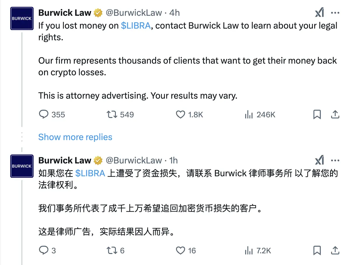 有推文指出,LIBRA 是一场精心制造出来收割 IQ150 群友的骗局,主要原因还是在于,有了 TRUMP 在前,Moonshot 在后的经验,导致部分人在没有仔细核心 LIBRA 全部信息以及 FOMO 情绪下造成亏损。