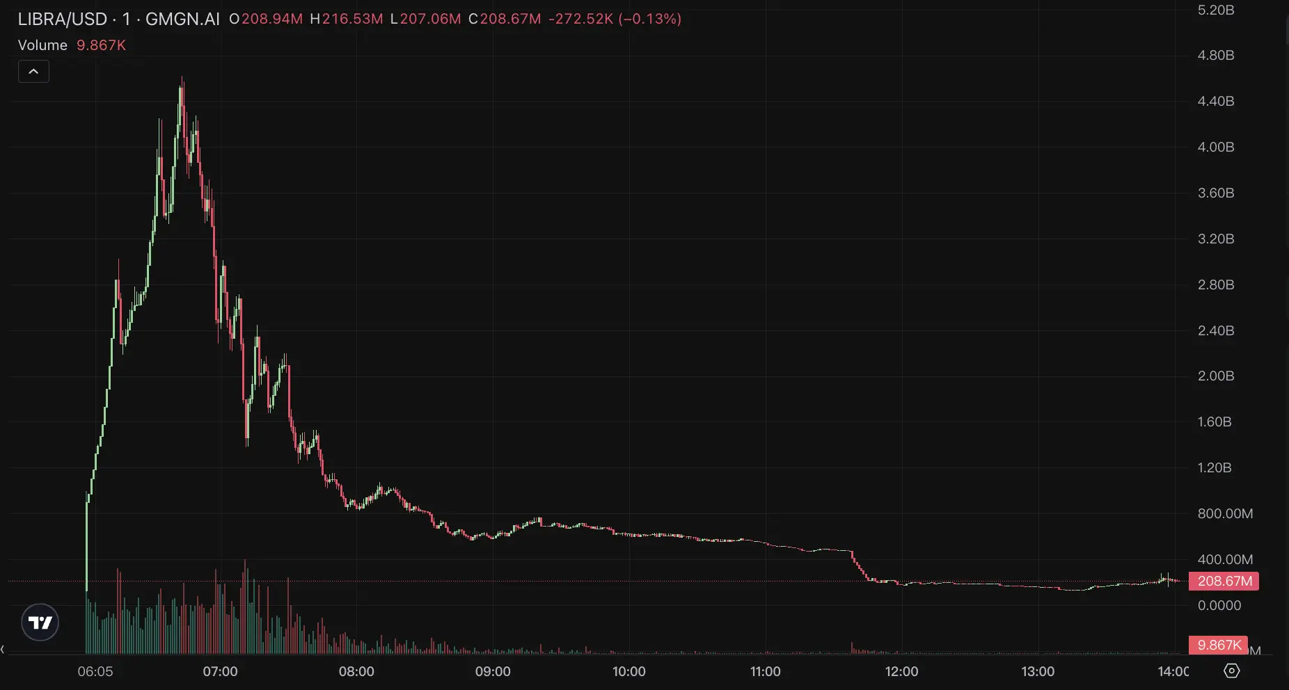 在情人节的浓厚氛围下,Milei 真切上演了一场令人咬牙的渣男表演。这时,LIBRA 的市值已经跌至了 4.5 亿美元,推文一出,LIBRA 市值随即暴跌至 2 亿美元。