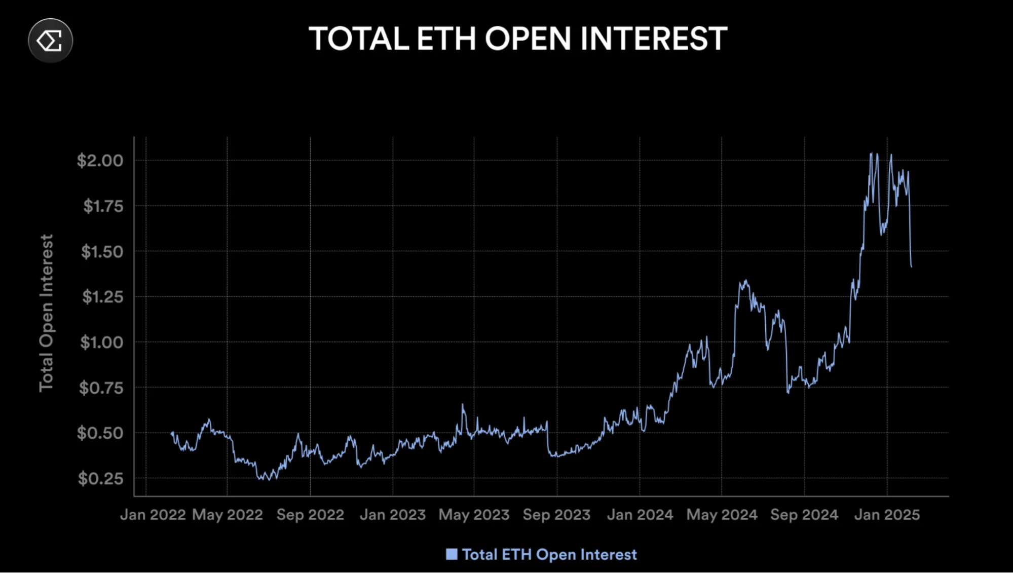 ETH 未平仓合约单日骤减 23 亿美元,全网合约头寸蒸发超 140 亿美元,创下历史最大单日跌幅。