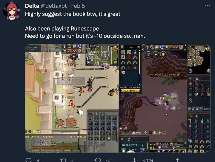 就我个人而言,我喜欢玩《Runescape》或者一些 PS5 游戏。