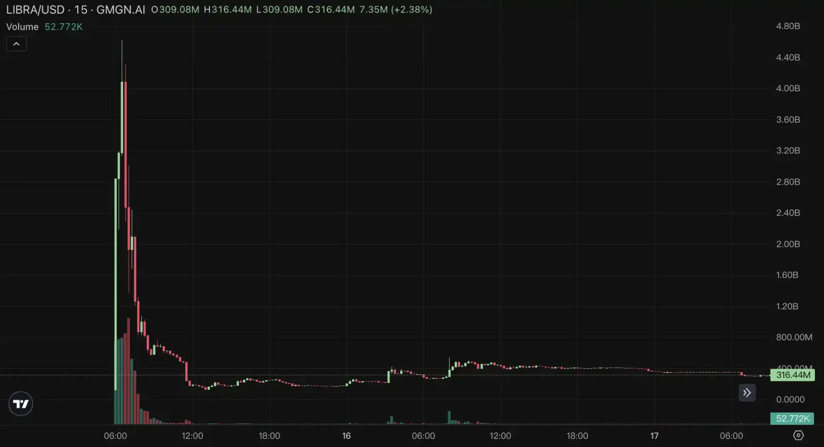 在 Davis 的视频发酵之后,他提到的多个项目方都发布了澄清声明。几乎所有声明都表示将会在未来为社区提供更多详细信息,包括 Hayden Davis 也表示将会持续发布视频进行披露背后的信息。可代币价格摆在这,经过两天发酵,LIBRA 依然只剩 3 亿美元市值。