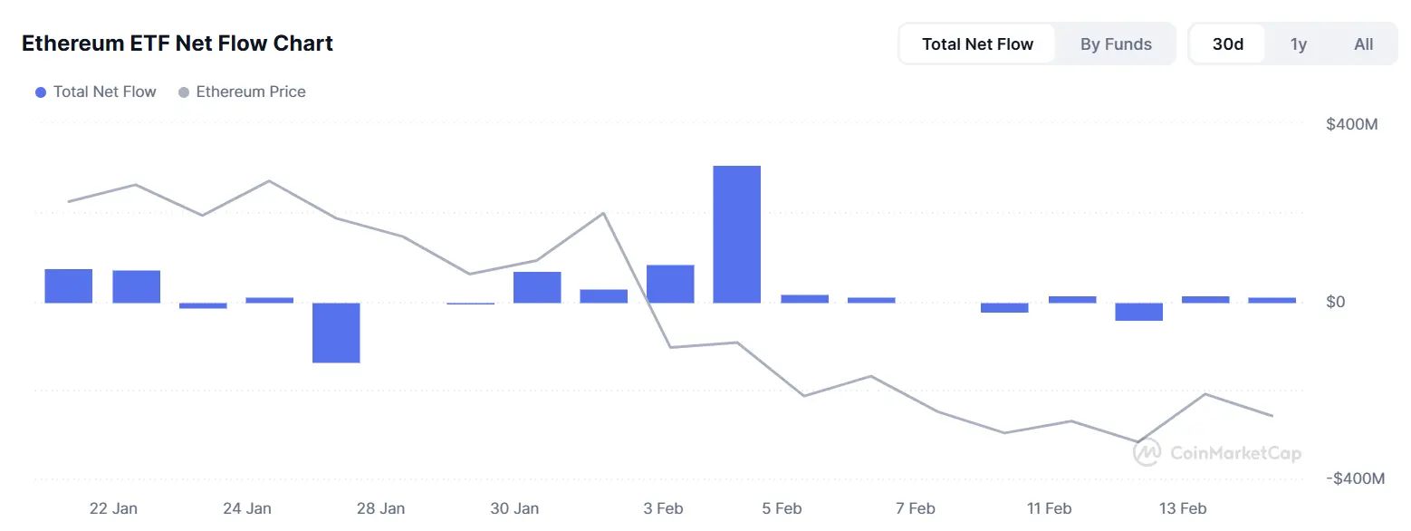 上周交易日(2月 10日至 2月 14日)以太坊现货 ETF 单周净流出0.263亿美元。机构买卖情况如下