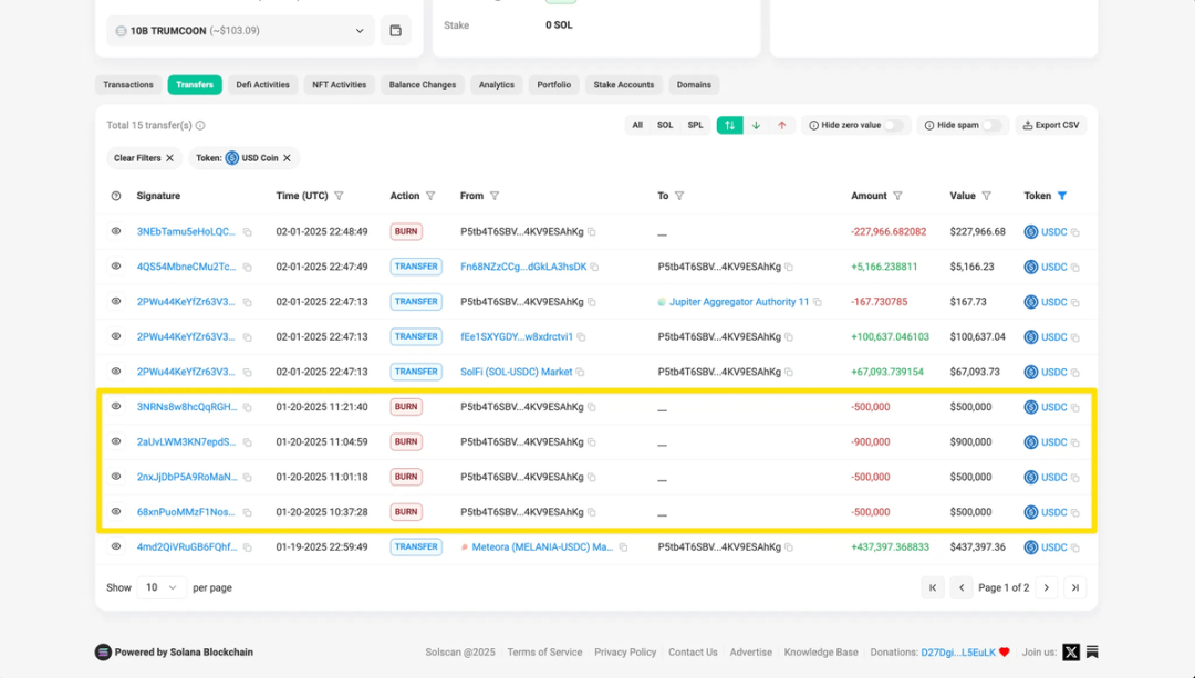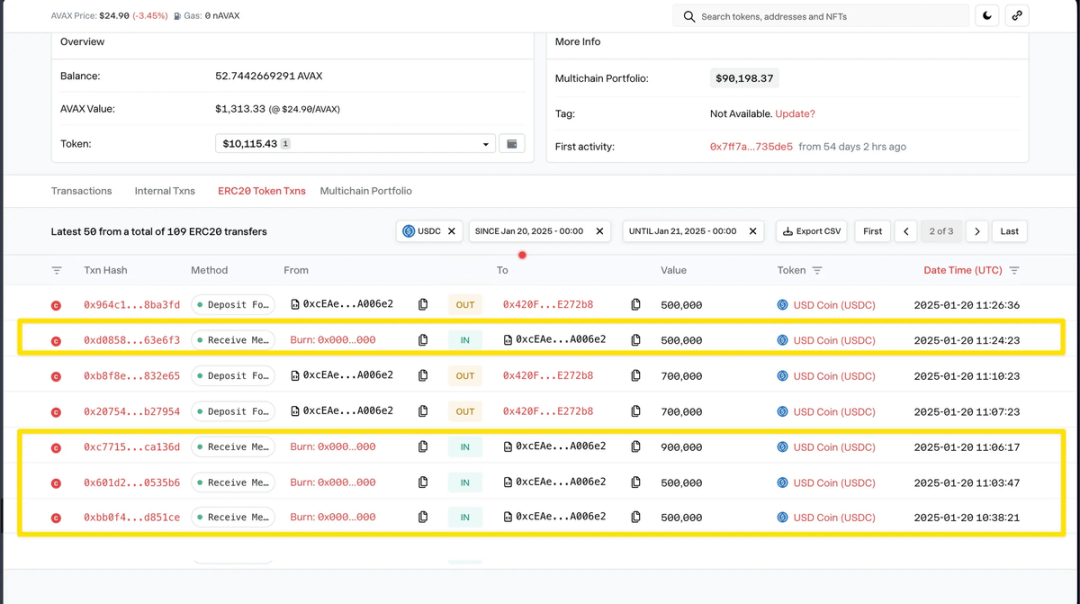 通过分析 Solana 和 Avalanche 等链上记录,Bubblemaps 发现 0xcEA 地址频繁使用跨链协议转移资金,掩盖真实流向。例如,Melania 代币的利润通过 CCTP 转换为 USDC 后,流入 Libra 的创建者钱包。
