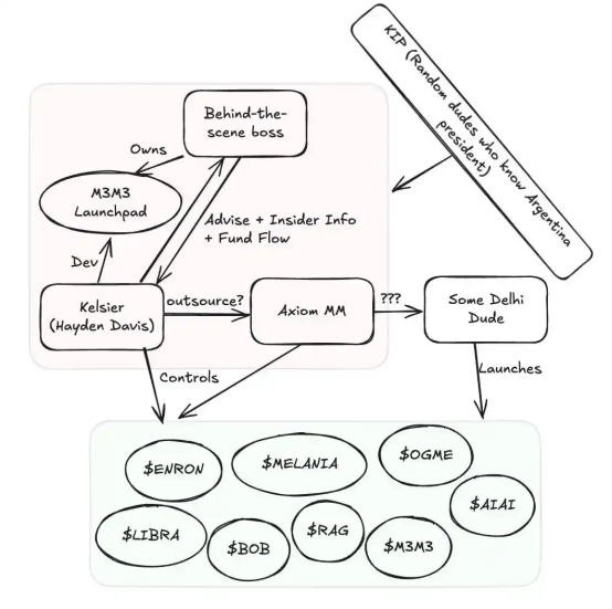 到了2月16日,不会善罢甘休的Solayer创始人Chaofan Shou再次曝出细节, 表示LIBRA 做市商Kelsier Ventures 及该项目发起人 Hayden Davis是此前特朗普总统夫人代币MELANIA的内部人士,且还与印度连环撤池诈骗者有关。