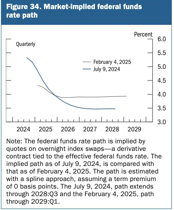 华尔街相关交易员目前已经把下次降息的预期放到了今年 12 月,需要关注的一点是,在 1 月发生的洛杉矶山火事件,可能会影响市场上关于通胀的定价,目前市场上对于通胀反弹担忧的原因的很大一部分原因出在通胀连续四个月的反弹,而山火导致的 CPI 上升在某种程度上属于系统性风险事件,在排除山火条件后,未必能够得到四个月连续反弹的结论;而从 Trump 政府一直努力地结束俄乌战争的角度出发,俄乌战争如果尽快结束,可能会导致建筑材料、能源价格、农产品价格地回落,以此降低通胀。未来很有可能会出现新的数据慢慢地挽救悲观预期,提高对于降息次数和力度的预期。