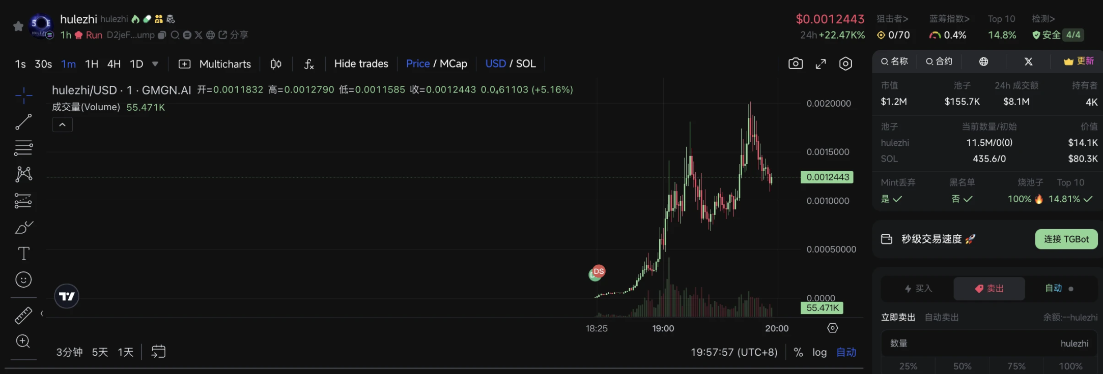 Solana 生态作为 Meme币主战场仍然率先反应了过来,有人直接在 pump.fun 上发行了同名 Meme币——hulezhi,据 GMGN 数据,高点价格一度突破0.002美元,市值一度突破200万美元,目前市值已大幅回落,暂报120万美元。