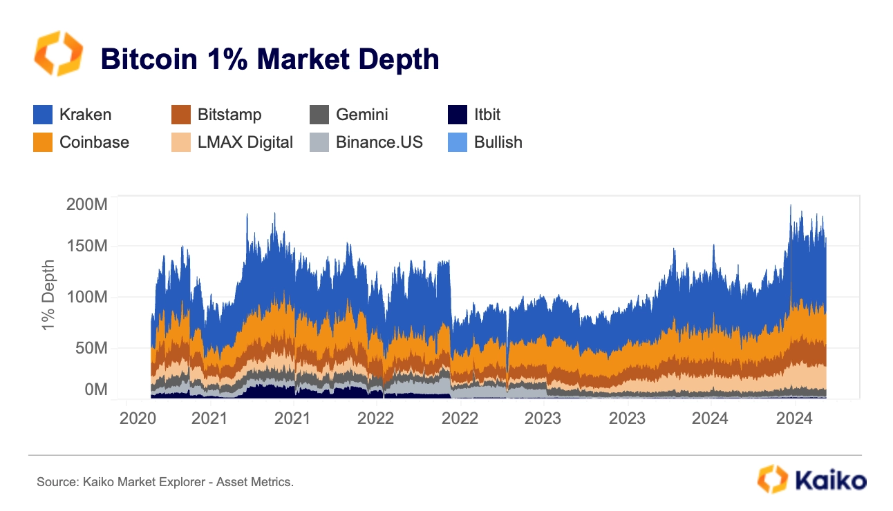 数据显示,每日山寨币的流动性指标(通过前 50 名 Token 的 1% 市场深度衡量)自 2023 年 9 月以来几乎翻倍,达到了 9.6 亿美元。