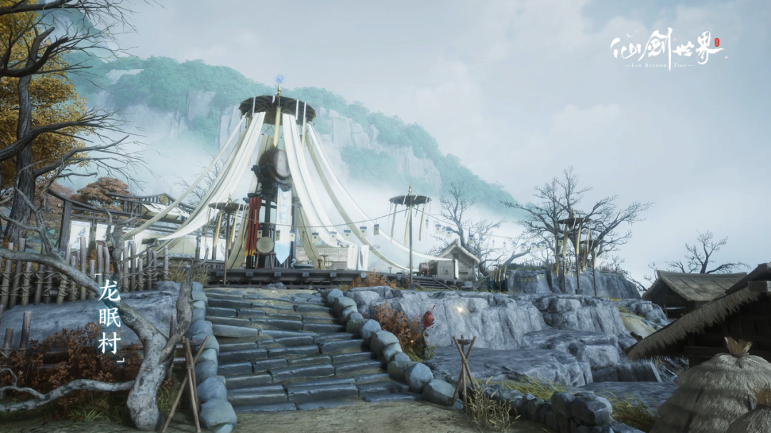 譬如在“龙眠村”,编曲者用低语般的人声吟唱和琵琶独特的音色渲染出荒凉悲戚的氛围感,更容易牵动玩家情绪,引导其一探村落的故事与秘密。