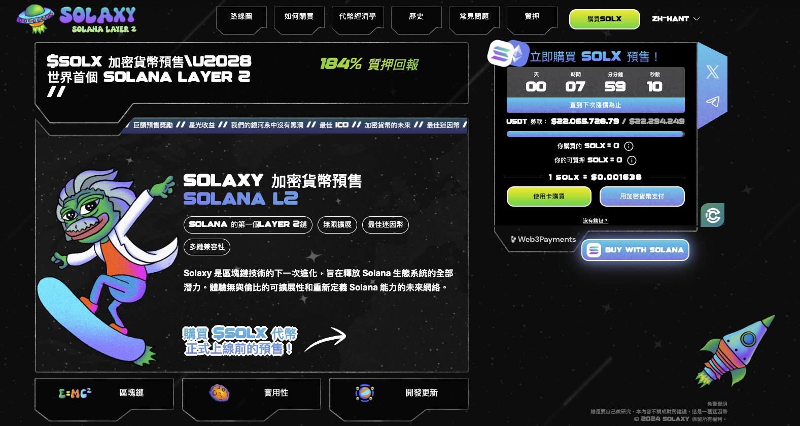 $SOLX仍在预售阶段,在预售结束后再上市DEX及CEX,建议投资者可进入官方网站、X及Telegram了解预售最新资讯。