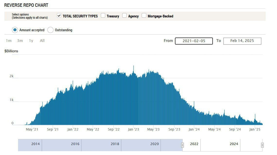 美联储的逆回购工具 (RRP) 是一种调节金融系统中流动性的重要工具。当 RRP 余额下降时,这通常意味着过剩流动性正在减少。